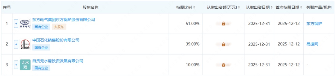 股权穿透图显示,东方电气集团东方锅炉股份有限公司持股51%,中国石化销售股份有限公司持股39%,自贡无水港投资发展有限公司持股10%。