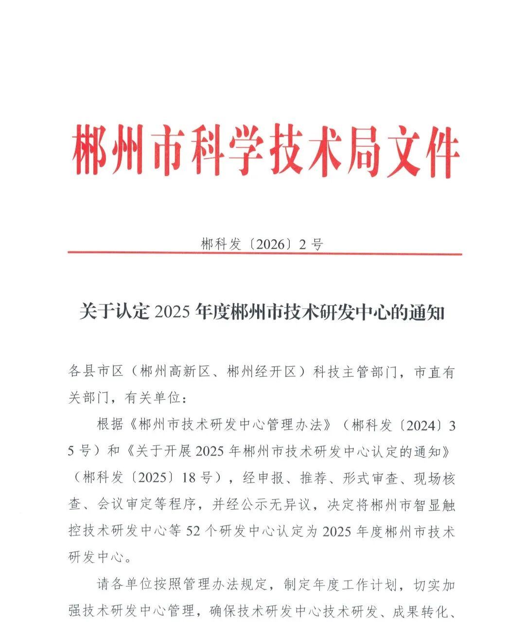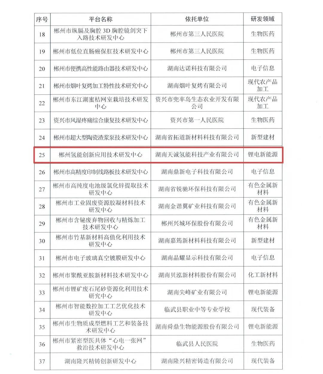 新年传喜讯,奋进正当时!近日,郴州市科学技术局正式发布了《关于认定2025年度郴州市技术研发中心的通知》(郴科发〔2026〕2号)。经严格评审,湖南天诚氢能科技产业有限公司申报的“郴州氢能创新应用技术研发中心”成功获得认定! 这标志着天诚氢能在技术创新平台建设上取得了重大突破,公司的研发实力与行业贡献获得了市级层面的高度认可。