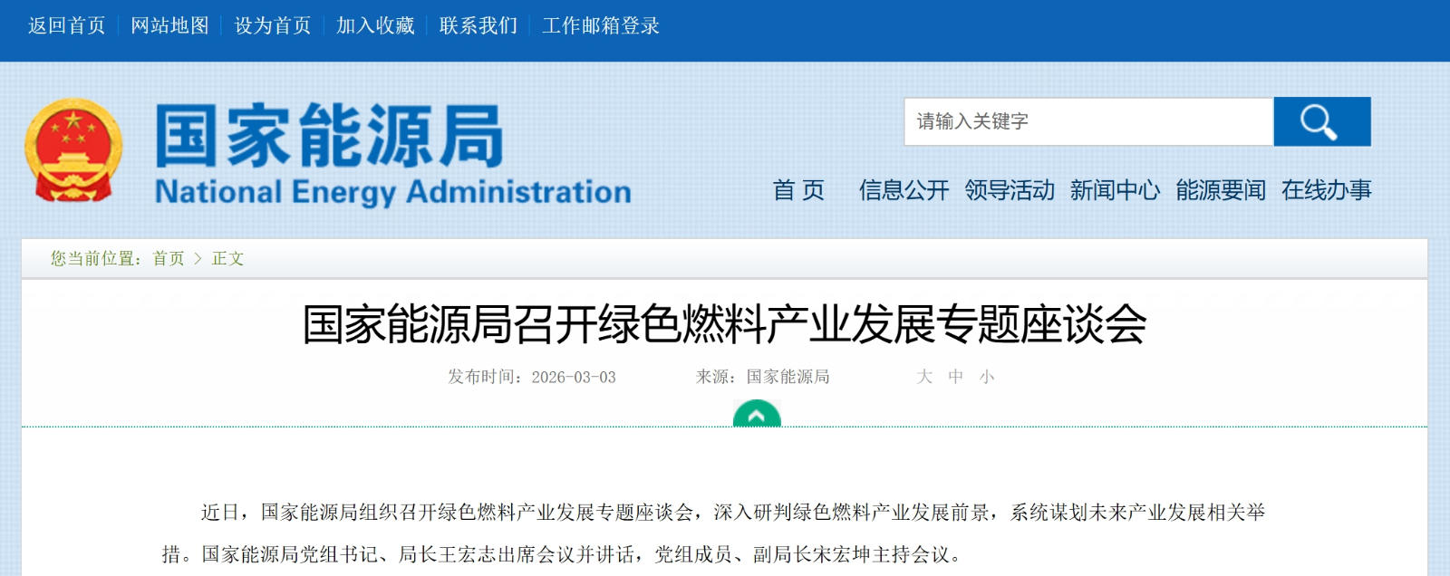 近日,国家能源局组织召开绿色燃料产业发展专题座谈会,深入研判绿色燃料产业发展前景,系统谋划未来产业发展相关举措。国家能源局党组书记、局长王宏志出席会议并讲话,党组成员、副局长宋宏坤主持会议。