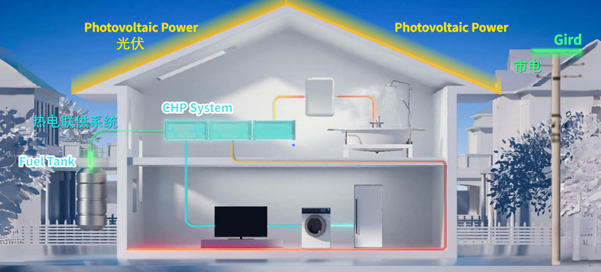 该产品采用撬装化设计,如果以甲醇作为燃料可实现氢能即产即用、热电联供,发电效率≥42%、热电综合效率≥90%。系统可输出220/380V交流电或48V直流电及输出50-85℃热水。其电能可用于照明、设备、充电桩、电器等供电,热能可用于生活供暖或生活热水等。应用上不仅摆脱了对高纯度氢气储运体系的依赖,也大幅降低了安全风险与基础设施成本,为用户提供了更安全、便捷、高效的综合能源解决方案。