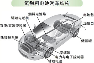 氢燃料电池汽车和纯电动汽车的主要区别是动力系统中电的来源。纯电动汽车的能量来自电池组,电池组在充电桩进行外部充电;氢燃料电池汽车的电来自氢气储罐和燃料电池电堆发电,氢气储罐在加氢站加注氢气。氢燃料电池汽车的动力来源是氢燃料。
